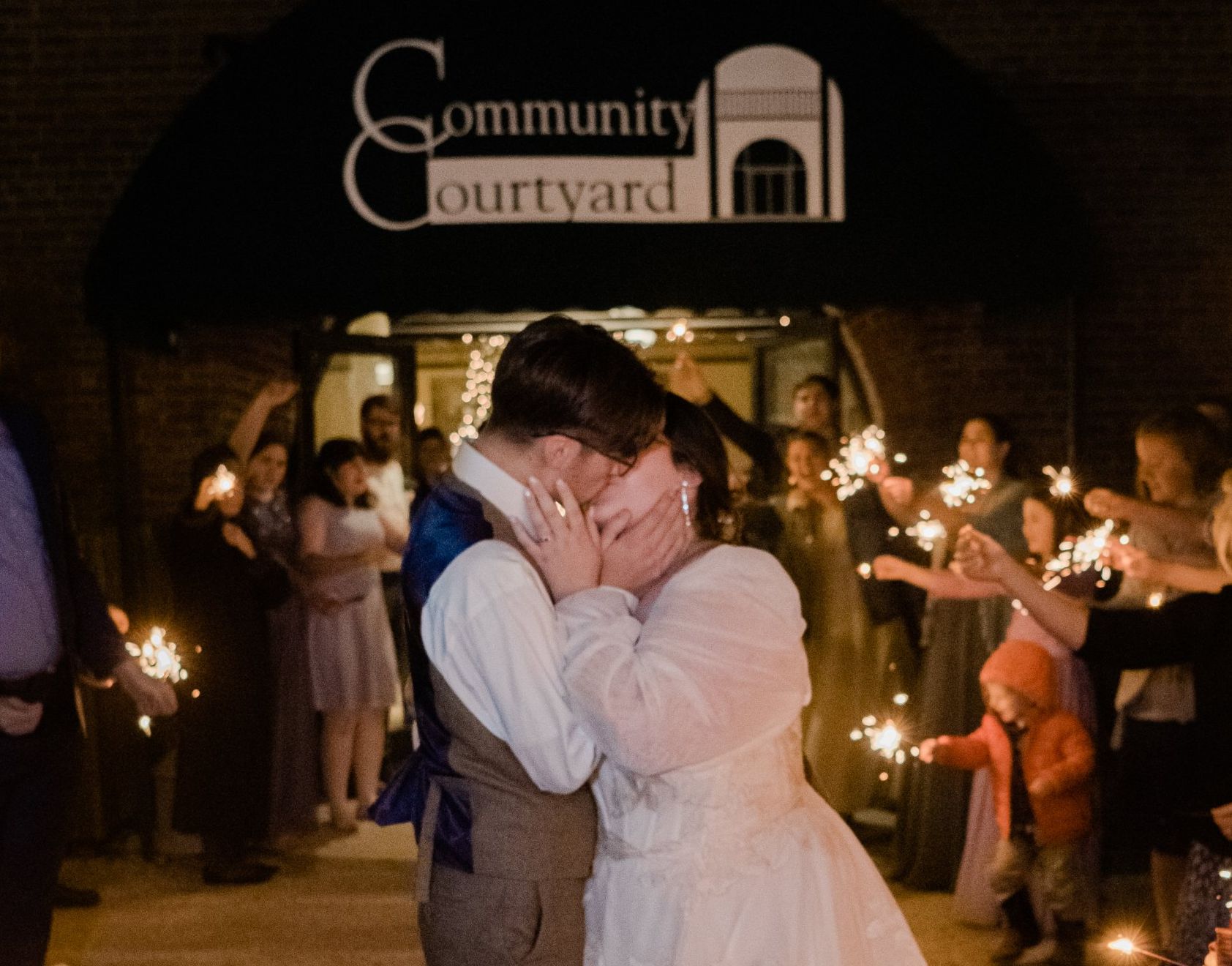The beauty of The Courtyard is its versatility. Whether you tend toward flowing lace or patched denim, The Courtyard is the perfect venue for your big day!
